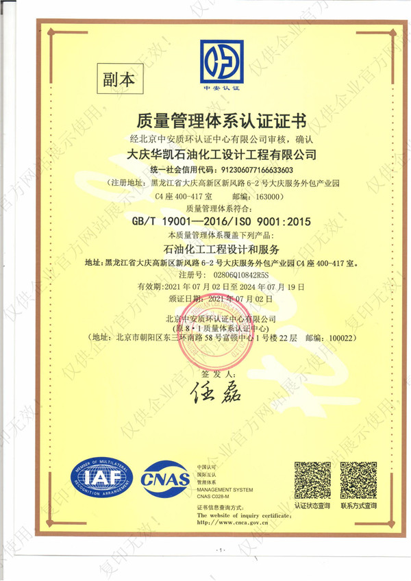 質(zhì)量管理體系證書